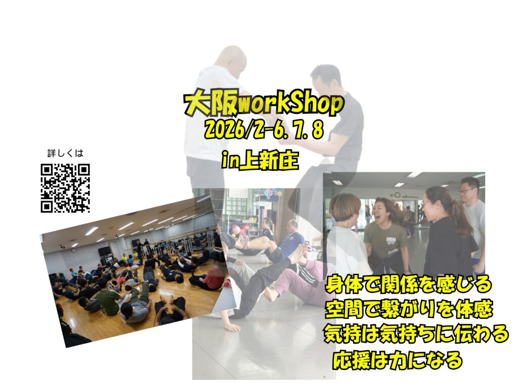 例えば、私が手本として肩を後ろに回しその繋がりで肘が上に上がって来る、というような「連動」を見せその動きを受講者が挑戦するのだ。