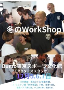 東京冬のワークショップが迫っている。 今回は、20数年前から10年程毎年使っていた新木場の「Bumb東京スポーツ文化館のアクターズスタジオ」を借りた。 別段意味はないのだが、新しい拠点、JRお茶の水駅明大通りの道場が小さ […]